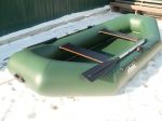 Лодка производится из высокопрочного эластичного многослойного армированного ПВХ материала UNISOLBOAT или POLYTEX (Южная Корея), плотностью 900 - 950гр/м2 или по желанию 1100 г/м2. Характеристики материала обеспечивают устойчивость к воздействию агрессивных внешних факторов, ультрафиолетовому излучению, соленой воде, горючему, маслам и т.п. Материал сохраняет свои свойства в широком диапазоне температур:от -30С до +70С и при этом обладает исключительно высокой прочностью, эластичностью и воздухонепроницаемостью. Срок службы такой лодки может равнятся 15-20 годам. Применение молекулярной сварки обеспечивает швам наиболее высокую прочность, долговечность и герметичность, сравнивая с прочностью и герметичностью основного материала, при этом не ухудшая их эластичности. Для безопасности эксплуатации лодки в случае повреждения ее корпуса, в соответствии с требованиями стандарта ISO №6185, баллоны лодки разделены на 2 герметичных отсека, зависимо от модели. Разделительные перегородки не допускают деформации баллонов в надутом состоянии. Чтобы в лодке можно было стоять на воде, на днище расположена слань и, что очень удобно, лодку можно сворачивать вместе с ней, не вынимая ее из карманов. Лодка оснащена нетонущими алюминиевыми веслами. Ширина лодки 150см и 41-й диаметр баллонов делает ее очень устойчивой на воде. Вес ее, по сравнению с любой килевой лодкой, почти в 2 раза меньше и, в то же время, эта лодка имеет те же размеры , что и некоторые килевые. Да и цена ее в два раза ниже килевого аналога. Эту модель лодки не захлеснет и высокая волна, на ней можно сплавлятся по горным рекам, у нее корма и нос одинакового размера, лодка очень вместительная. На все лодки фирмой дается 3 годичная гарантия.